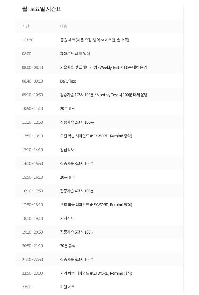 커넥츠프랩 광주전남대점 TIME TABLE